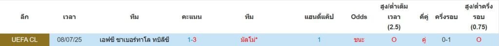 สกอร์ที่คาด : มัลโม่ ชนะ 3-1