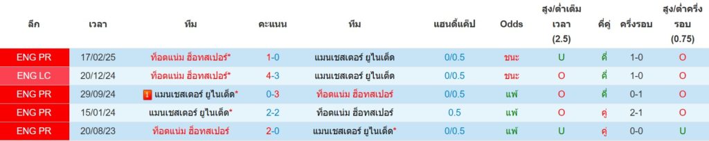 สถิติการพบกันล่าสุดของ : สเปอร์ส -vs- แมนฯ ยูไนเต็ด