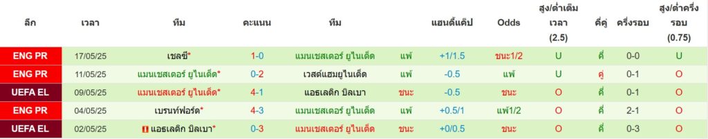 สถิติ 5 นัดล่าสุดของ แมนฯ ยูไนเต็ด : ชนะ 2 เสมอ 0 แพ้ 3