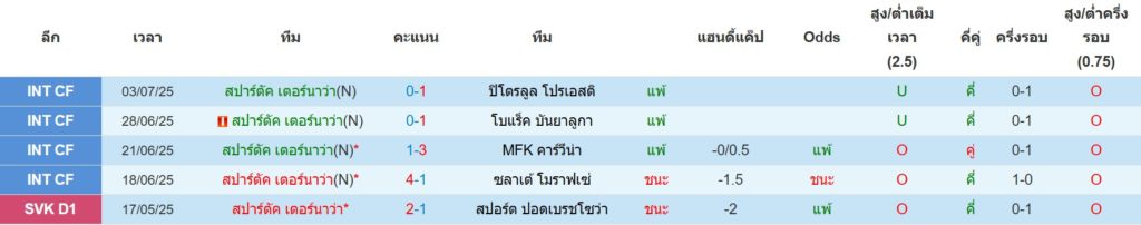 สถิติ 5 นัดล่าสุดของ สปาร์ตัก เทอร์นาว่า : ชนะ 2 เสมอ 0 แพ้ 3