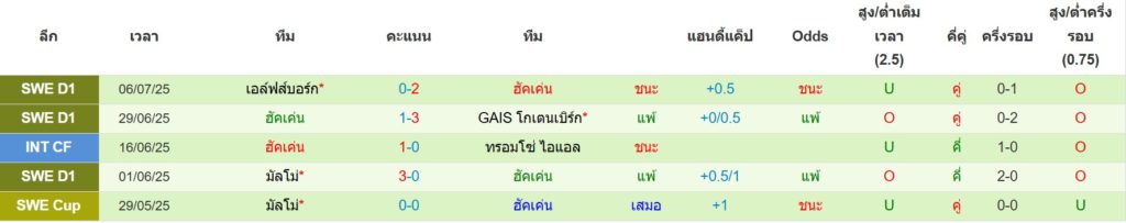 สถิติ 5 นัดล่าสุดของ ฮัคเค่น : ชนะ 2 เสมอ 1 แพ้ 2