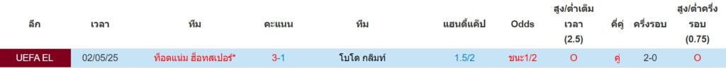 สถิติการพบกันล่าสุดของ : โบโด กลิมต์ -vs- สเปอร์ส