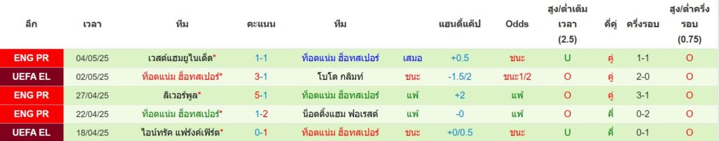 สถิติ 5 นัดล่าสุดของ สเปอร์ส : ชนะ 2 เสมอ 1 แพ้ 2