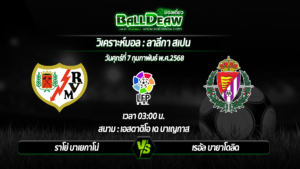 ทรรศนะ : ไม่แคล้วงานนี้เสร็จเจ้าถิ่น ราโย่ บาเยกาโน่ กินนิ่มตามทรง เพราะพวกเขาเหนือกว่าเยอะมาก และกำลังลุ้นทำอันดับไปบู๊บอลยุโรปซีซั่นหน้าอยู่ ฉะนั้นไม่แปลกที่จะเห็นพวกเขาเล่นได้โคตรตึง ด้วยผลงานชนะ 3 จาก 4 เกมลีกที่ผ่านมาแบบไม่แพ้ใคร (เสมอ 1) และผลิตสกอร์รวมกันทั้งสิ้นกว่า 6 ประตูเลยทีเดียว สวนทางกับทีมเยือน เรอัล บายาโดลิด บ๊วยของลีกที่ฟอร์มยังกากจัดเหมือนเดิม ด้วยการพ่าย 7 จาก 9 เกมลีกท้าย (ชนะ 2) และโดนถลุงตาข่ายตายอนาถกว่า 22 ตุง นอกจากนี้สถิติการพบกันหนล่าสุดก็เป็นฝ่ายแพ้คาบ้าน 1-2 อีกด้วย ฉะนั้นงานนี้ในทริปเยือนก็ไม่น่ารอดความยับที่จะได้รับกลับออกไป แนะนำอยู่ต่อรอรับทรัพย์สบายใจสุด