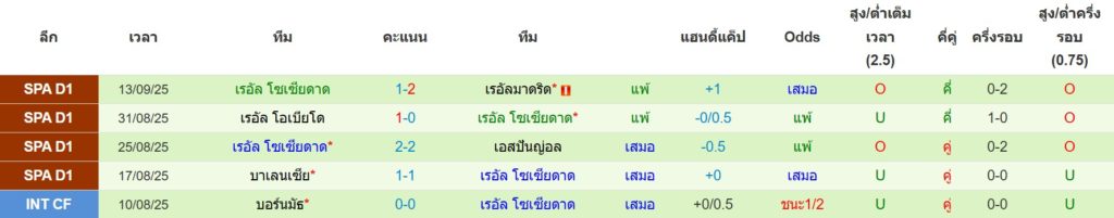 สถิติ 5 นัดล่าสุดของ เรอัล โซเซียดาด : ชนะ 0 เสมอ 3 แพ้ 2