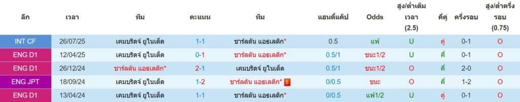 สถิติการพบกันล่าสุดของ : เคมบริดจ์ -vs- ชาร์ลตัน