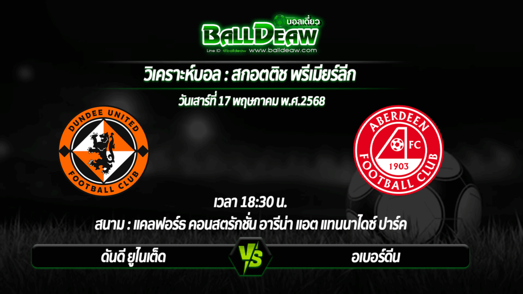 วิเคราะห์บอล สกอตติช พรีเมียร์ลีก : ดันดี ยูไนเต็ด -vs- อเบอร์ดีน ( 17 พ.ค. 68 )