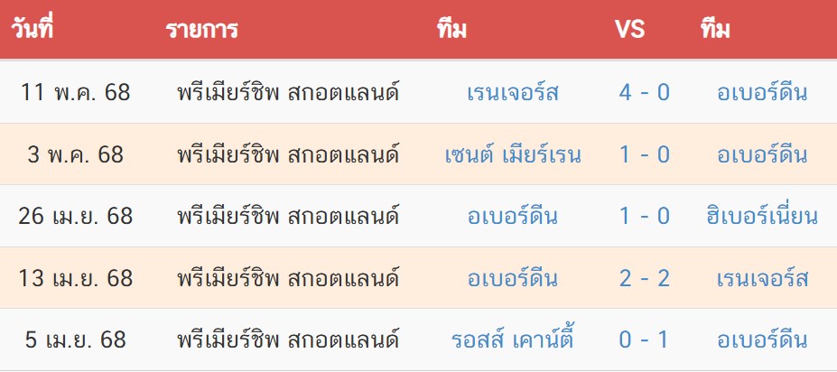สถิติ 5 นัดล่าสุดของ อเบอร์ดีน : ชนะ 1 เสมอ 1 แพ้ 3