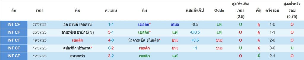 สถิติ 5 นัดล่าสุดของ เซลติก : ชนะ 2 เสมอ 1 แพ้ 2