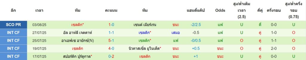 สถิติ 5 นัดล่าสุดของ เซลติก : ชนะ 3 เสมอ 1 แพ้ 1