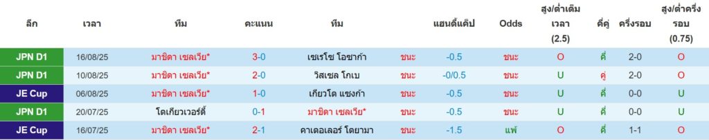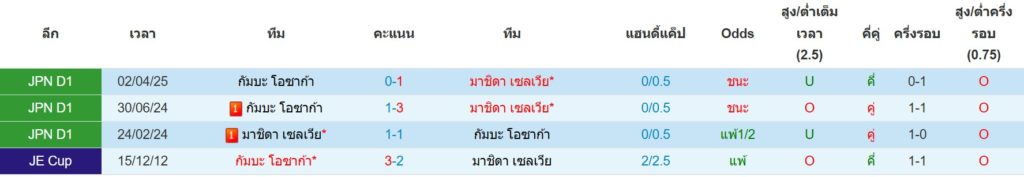 สถิติการพบกันล่าสุดของ : มาชิดะ เซลเวีย -vs- กัมบะ โอซาก้า
