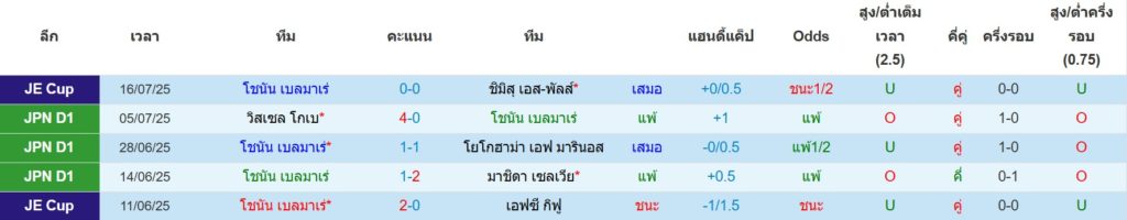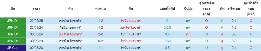 สถิติการพบกันล่าสุดของ : โชนัน เบลล์มาเร่ -vs- เซเรโซ่ โอซาก้า