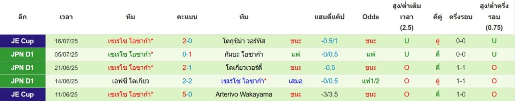 สถิติ 5 นัดล่าสุดของ เซเรโซ่ โอซาก้า : ชนะ 3 เสมอ 1 แพ้ 1