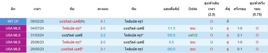 สถิติการพบกันล่าสุดของ : โคลัมบัส ครูว์ -vs- แนชวิลล์ เอสซี