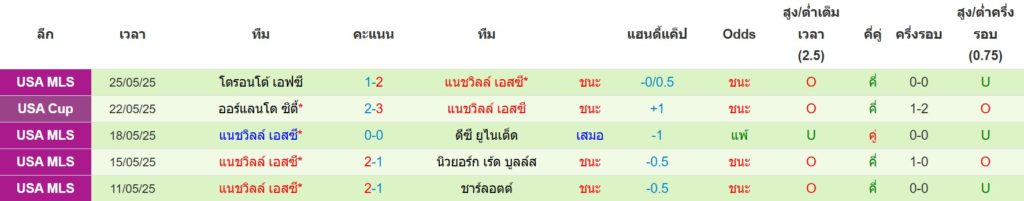 สถิติ 5 นัดล่าสุดของ แนชวิลล์ เอสซี : ชนะ 4 เสมอ 1 แพ้ 0