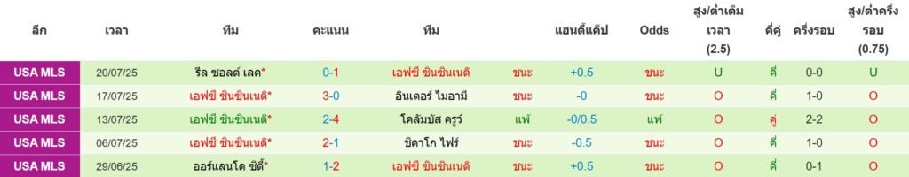 สถิติ 5 นัดล่าสุดของ เอฟซี ซินซินนาติ : ชนะ 4 เสมอ 0 แพ้ 1