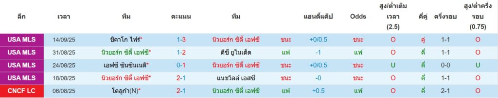 สถิติ 5 นัดล่าสุดของ นิวยอร์ค ซิตี้ : ชนะ 3 เสมอ 0 แพ้ 2