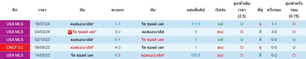 สถิติการพบกันล่าสุดของ : เรียล ซอลต์ เลค -vs- ลอสแองเจลิส เอฟซี