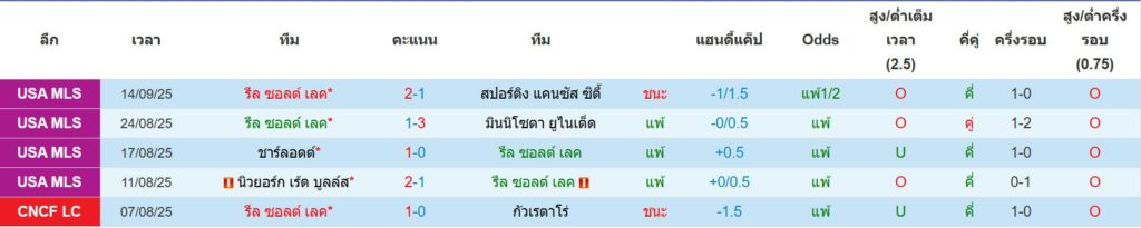 สถิติ 5 นัดล่าสุดของ เรียล ซอลต์ เลค : ชนะ 2 เสมอ 0 แพ้ 3