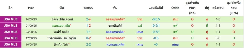 สถิติ 5 นัดล่าสุดของ ลอสแองเจลิส เอฟซี : ชนะ 2 เสมอ 2 แพ้ 1