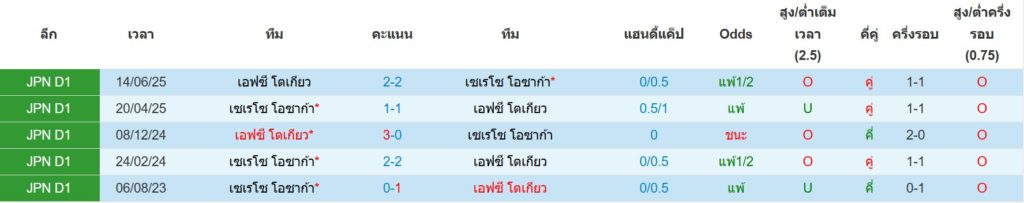 สถิติการพบกันล่าสุดของ : เอฟซี โตเกียว -vs- เซเรโซ่ โอซาก้า