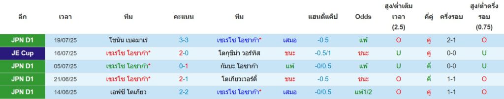 สถิติ 5 นัดล่าสุดของ เซเรโซ่ โอซาก้า : ชนะ 4 เสมอ 0 แพ้ 1