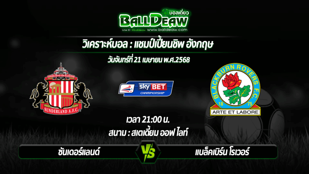 วิเคราะห์บอล แชมป์เปี้ยนชิพ อังกฤษ : ซันเดอร์แลนด์ -vs- แบล็คเบิร์น โรเวอร์ ( 21 เม.ย. 68 )