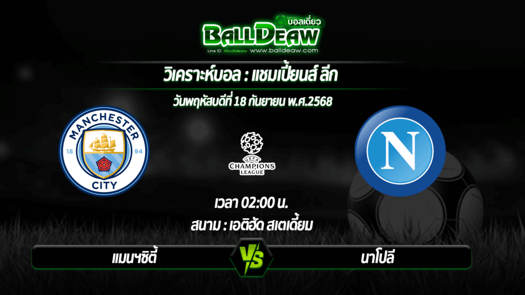 ทรรศนะ : เป็นเกมที่ค่อนข้างจะมีเรื่องให้พูดถึงเยอะพอสมควร ไม่ว่าจะเป็นการกลับมาเยือนถิ่นเก่าของ เควิน เดอ บรอยน์ หรือสองอดีตนักเตะ แมนฯยู อย่าง สกอตต์ แม็กโตมิเนย์ กับ ราสมุส ฮอยลุนด์ ที่เหมือนได้กลับไปทำศึก “แมนเชสเตอร์ ดาร์บี้” อีกครั้ง บอกเลยว่าแมตช์นี้เดือด ๆ แน่ จริงอยู่ที่ทีมเยือน นาโปลี ค่อนข้างฟอร์มโหดและพกพาความมั่นใจมาเต็มเปี่ยม แต่เจ้าถิ่น แมนฯซิตี้ ที่เพิ่งจะไล่ยำ “ปีศาจแดง” มาหมาด ๆ 3-0 ก็กำลังเครื่องแรงไม่ต่างกัน และมองว่า เอติฮัด สเตเดี้ยม จะเป็นสังเวียนเชือดของเจ้าบ้านต่อเนื่องเป็นแมตช์ที่สองติดต่อกัน เมื่อพิจารณาจากหน้าเสื่อกับภาพรวมต่าง ๆ แนะนำอยู่ต่อไม่ง้อดวง