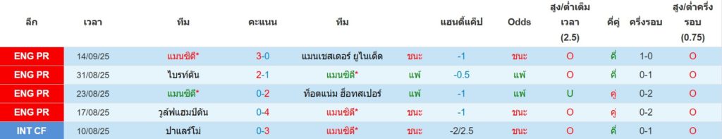 สถิติ 5 นัดล่าสุดของ แมนฯซิตี้ : ชนะ 3 เสมอ 0 แพ้ 2