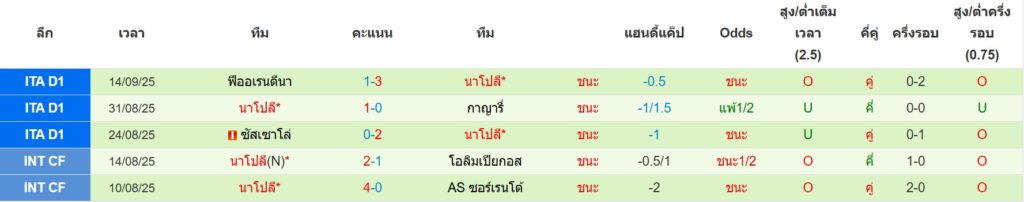 สถิติ 5 นัดล่าสุดของ นาโปลี : ชนะ 5 เสมอ 0 แพ้ 0