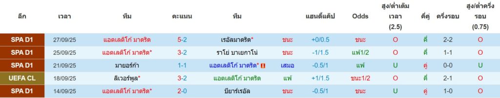 สถิติ 5 นัดล่าสุดของ แอตฯ มาดริด : ชนะ 3 เสมอ 1 แพ้ 1