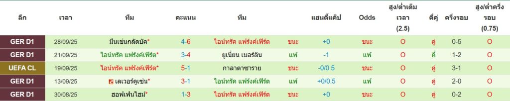 สถิติ 5 นัดล่าสุดของ แฟร้งค์เฟิร์ต : ชนะ 3 เสมอ 0 แพ้ 2