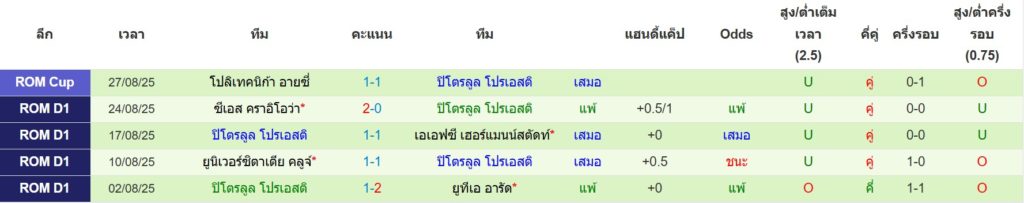 สถิติ 5 นัดล่าสุดของ เปโตรลุล : ชนะ 0 เสมอ 3 แพ้ 2